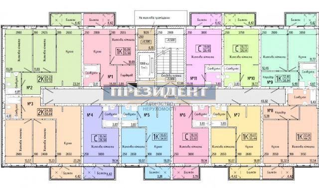 Высота потолков (м): 2,7-3