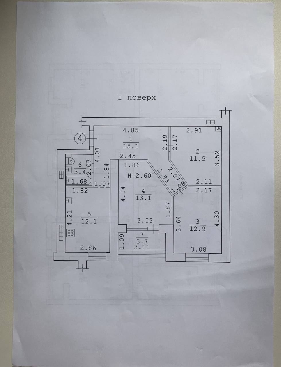 Высота потолков: 2.6