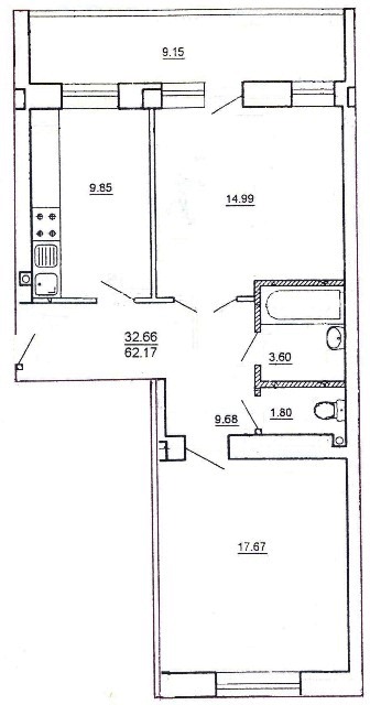 Площадь общая: 60.2 м²
