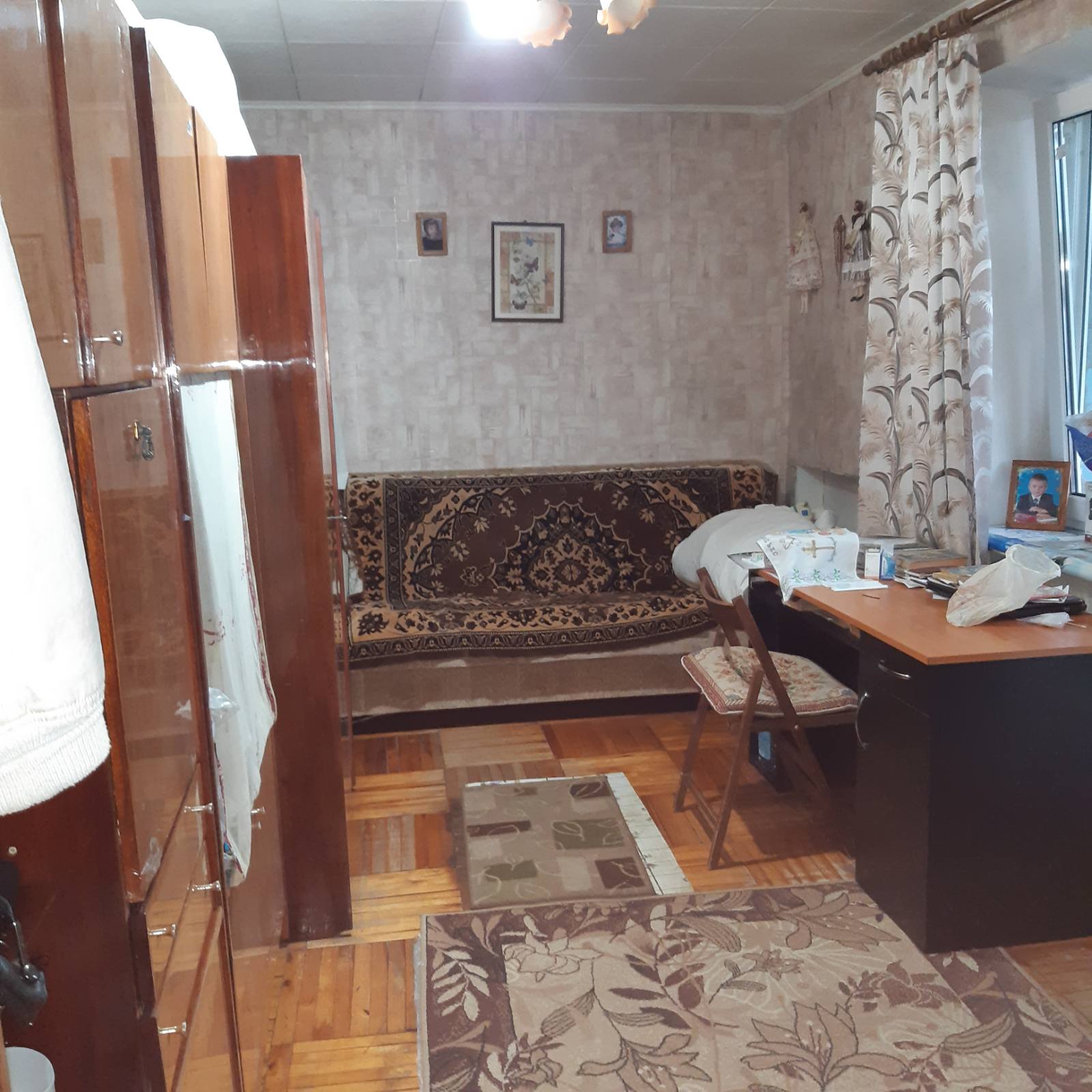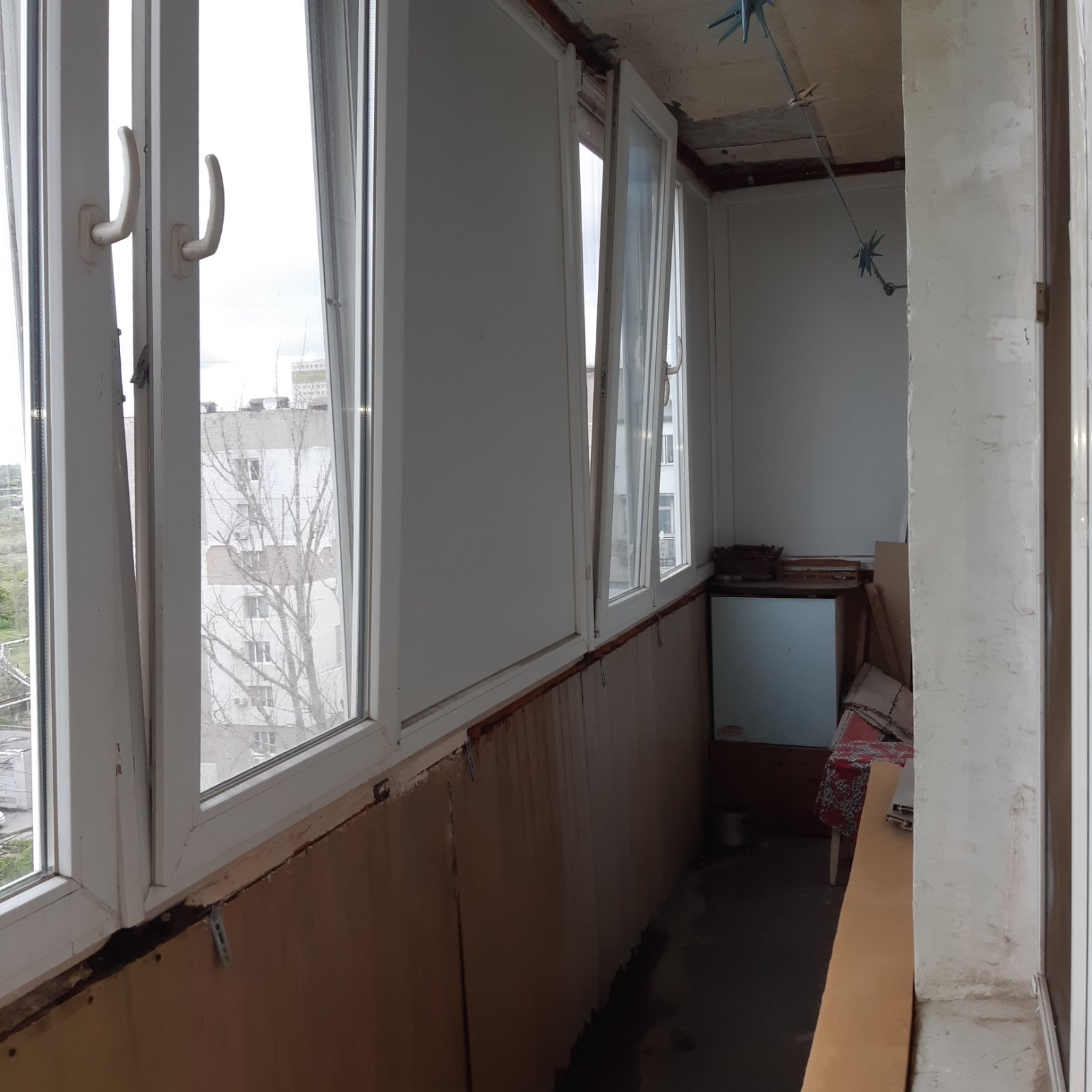 Квартира в жилом состоянии, двухсторонняя, большой балкон на комнату и кухню, лоджия из спальни, металлопластиковые окна и застекление, вид на море и лиман.