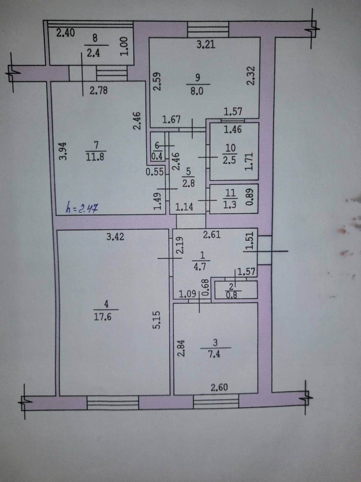 Высота потолков: 2.7