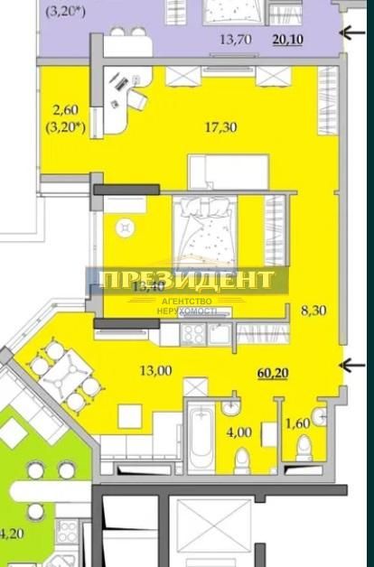 Площадь общая: 60 м²