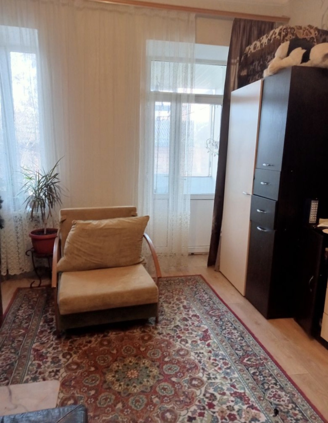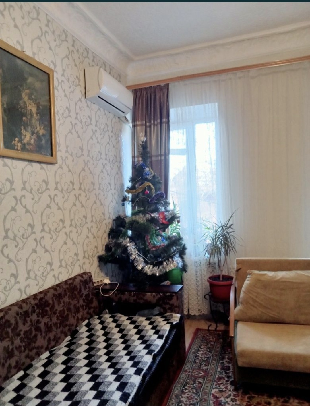 2х комн квартира на 2м этаже с балконом.балкон выходит на фасад. Двухконтурный котел.элктросчетчик день-ночь. Кондиционер.сигнализация. санузел совмещен.душ