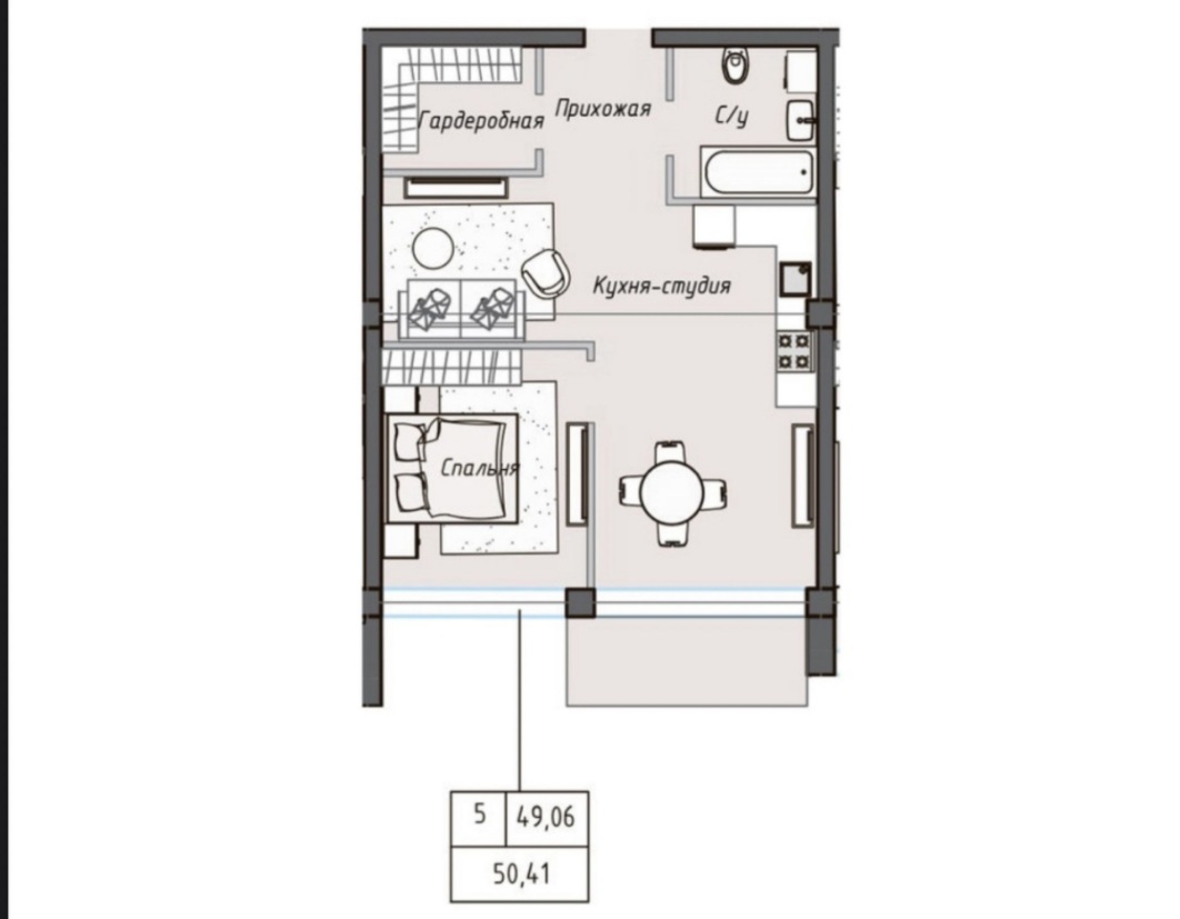Площадь общая: 50.41 м²