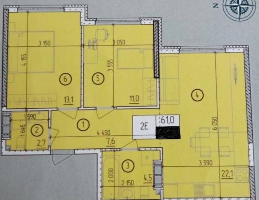 Площадь общая: 61 м²