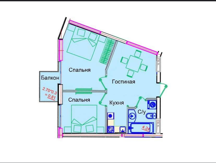 Расположение квартиры: Неуглова на одну сторону