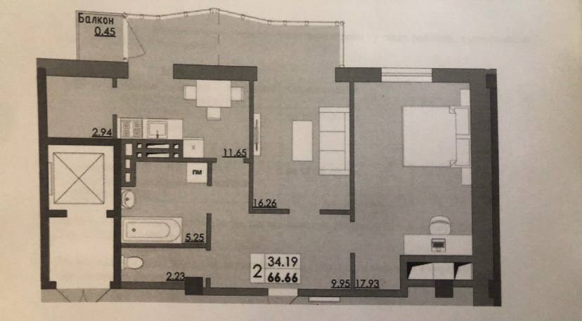Площадь общая: 66.6 м²