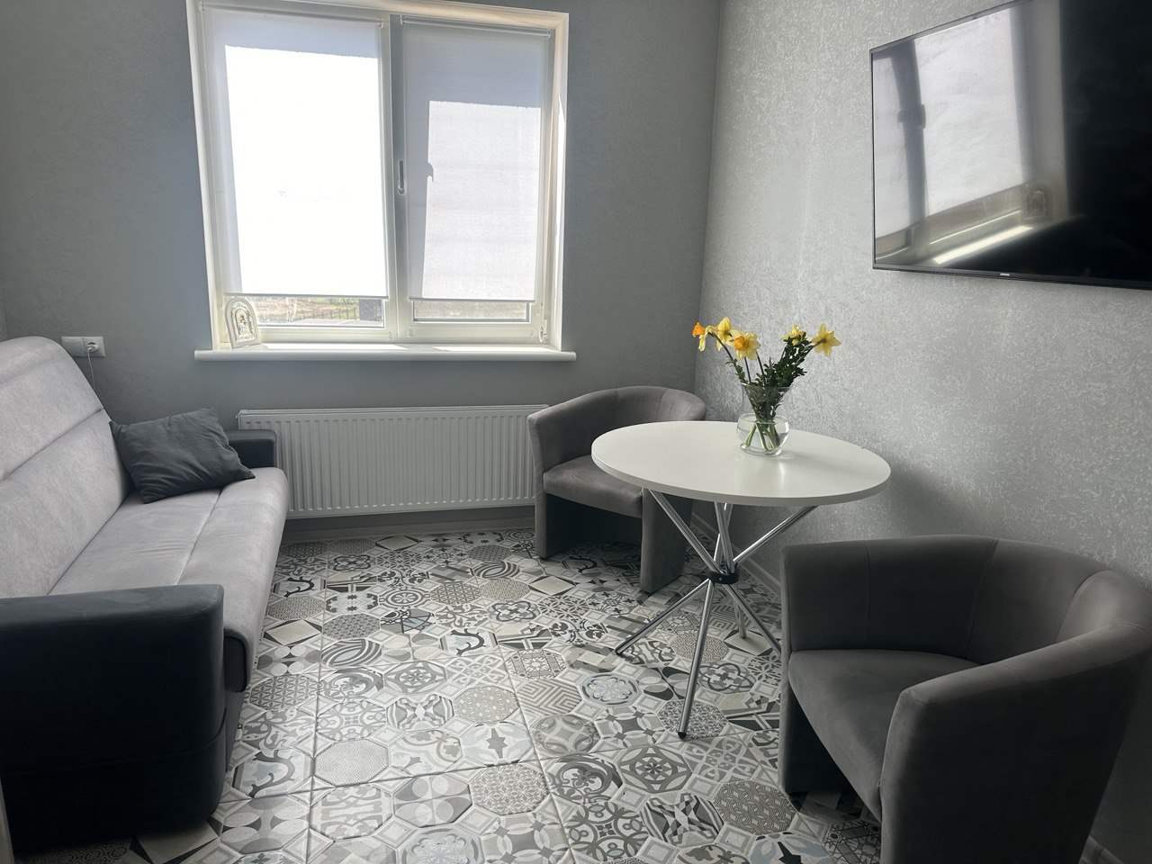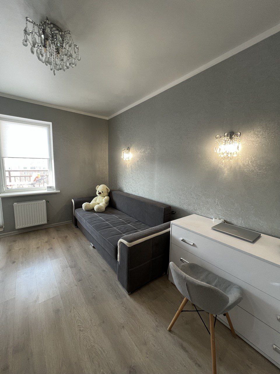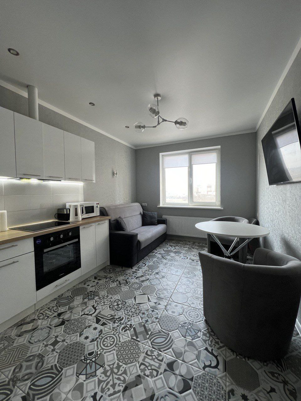 Квартира в новом доме от компании Кадор груп. Капитальный ремонт в серых тонах, новая мебель и техника входят в стомость. Закрытая территория, видео наблюдение