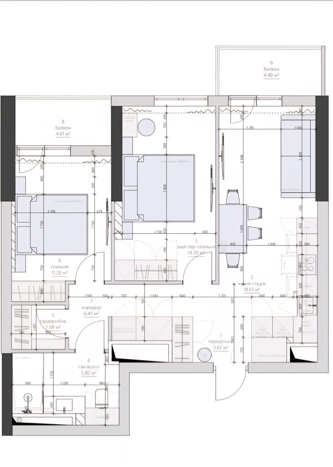 Площадь общая: 67 м²