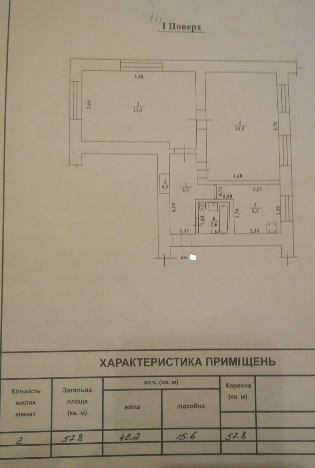 Площадь общая: 58 м²