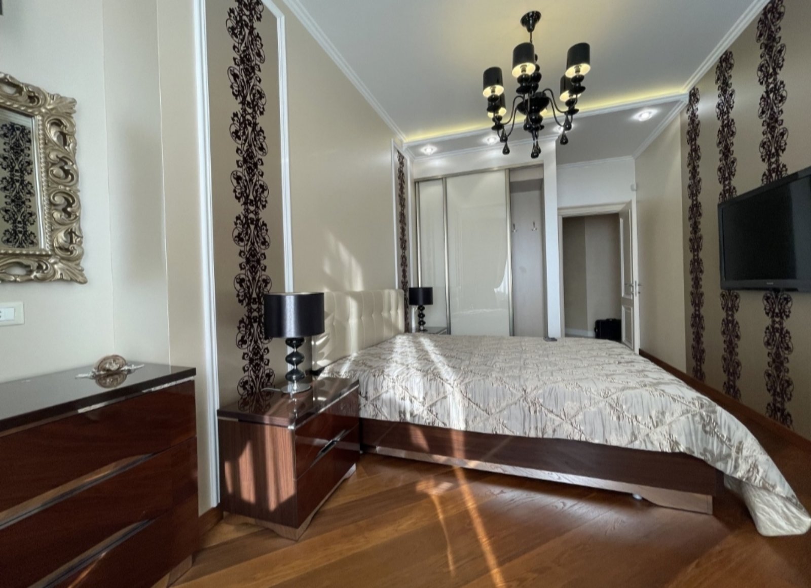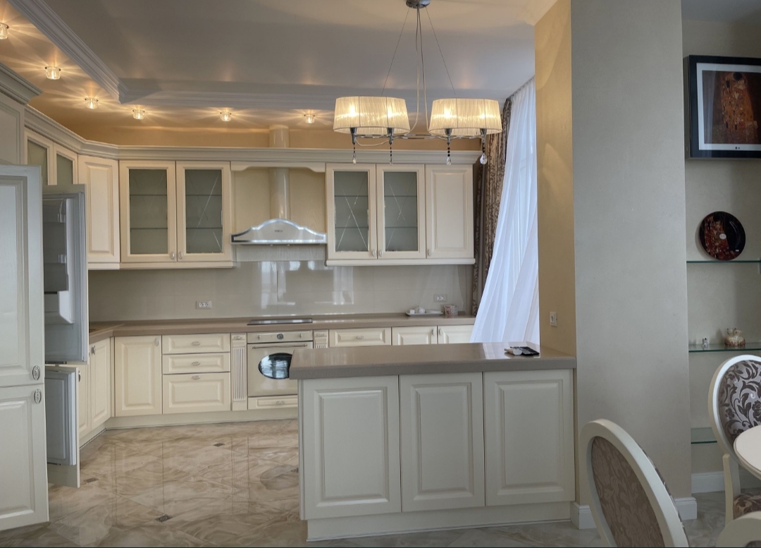 Двух комнатная квартира в элитном ЖК Стикон, общей площадью 120м2, евроремонт , две раздельные комнаты, просторная кухня-студия, два санузла гардеробная, теплые полы. укомплектована современной мебелью и техникой. имеется свой личный тамбур, автономное отопление. СПС более 3-х лет, свободная, За отдельную плату можно приобрести место в паркинге