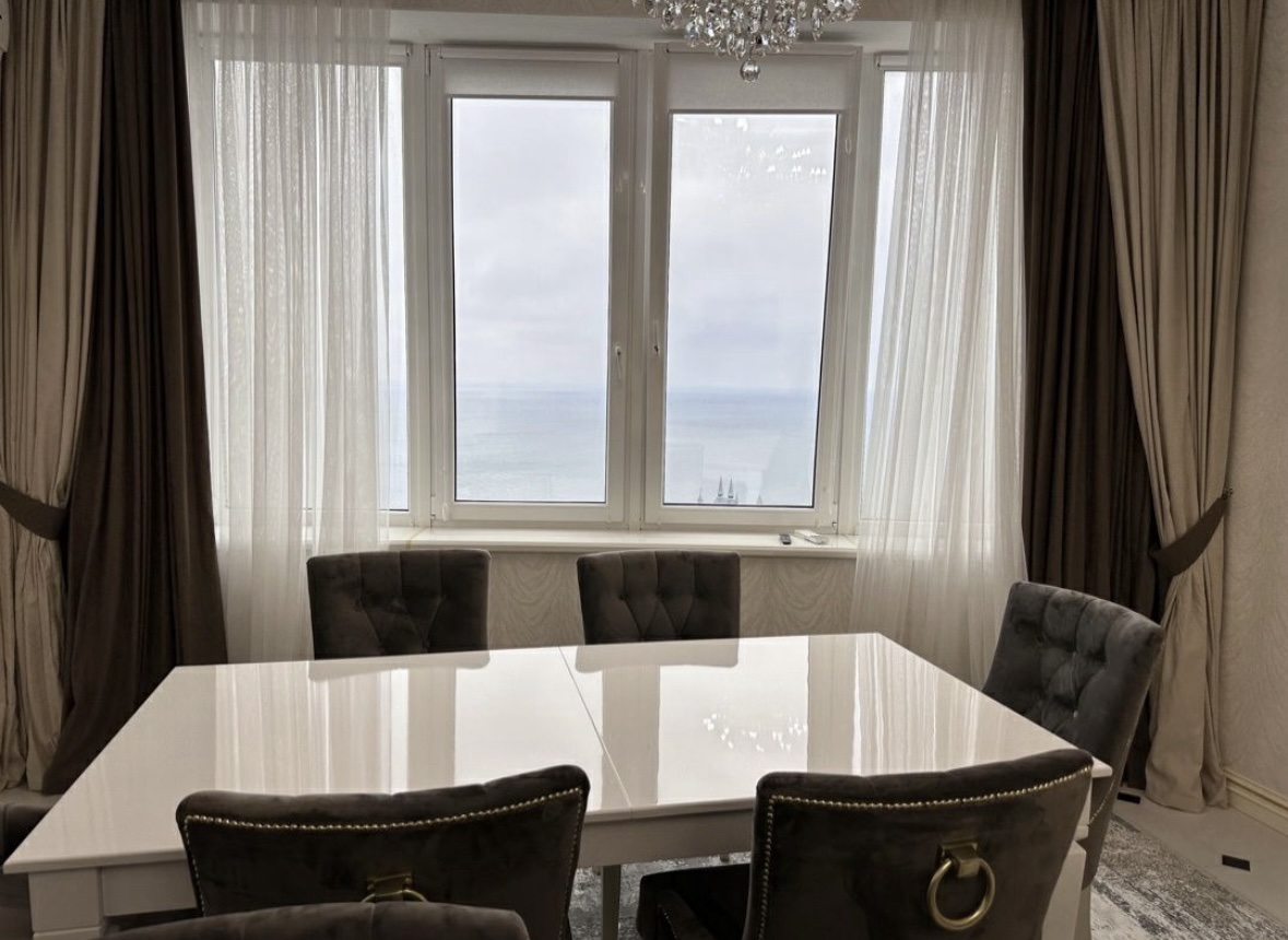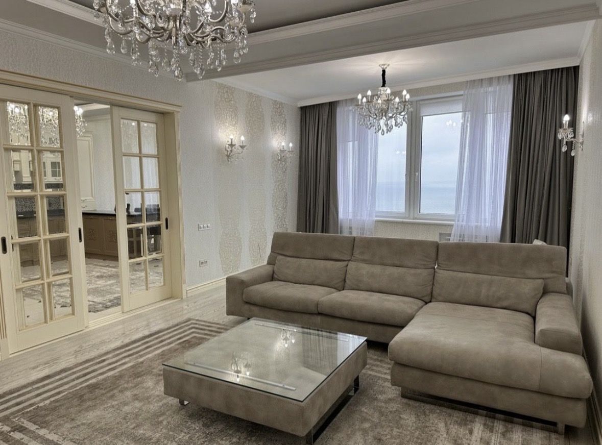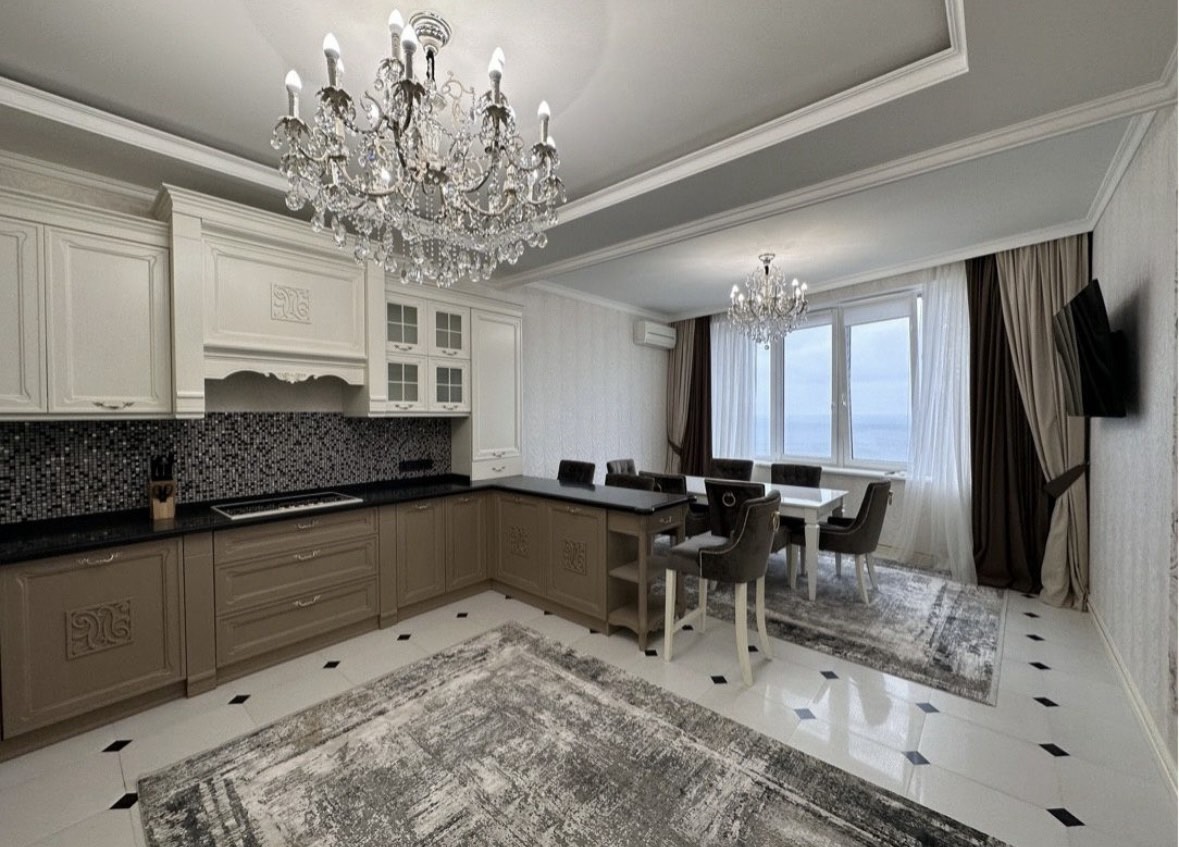 Продается 3 комнатная квартирпа в ЖК Руслан и Людмила ул. Литературная. Квартира расположена на 11 этаже общ пл 150 кв.м. Из окон красивый вид на море и парк. Стильная,в светлых тонах. Просторная кухня гостиная +3 спальни. Полностью укомплектована дорогой мягкой мебелью и бытовой техникой. Есть всё для комфортного проживания. Никто в ней не проживал. Всё новое. Так же в паркинге имеется 2 паркинга и кладовая, за отдельную стоимость. Рядом парк Юность,трасса здоровья, Аркадия