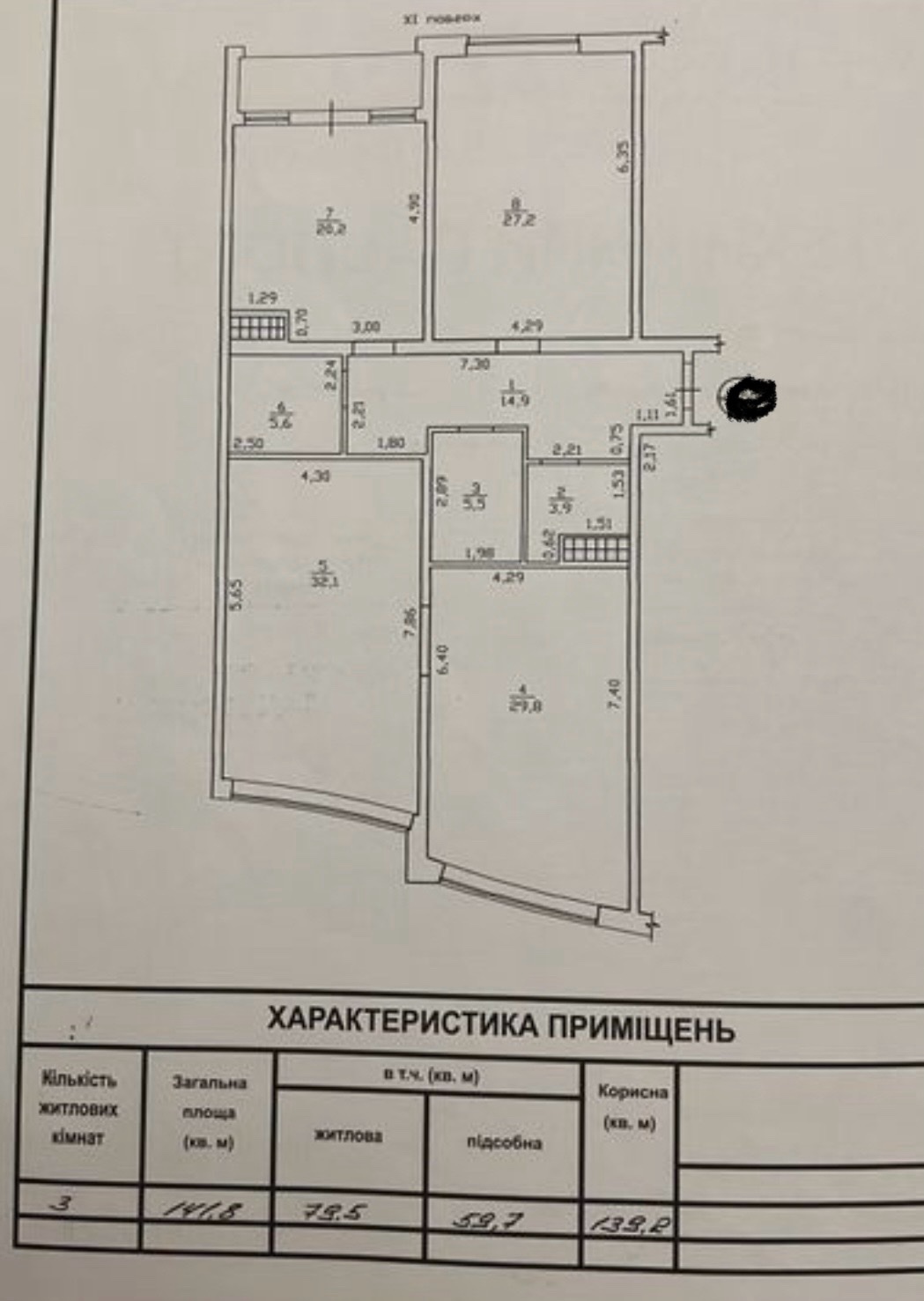 Площадь общая: 141.8 м²