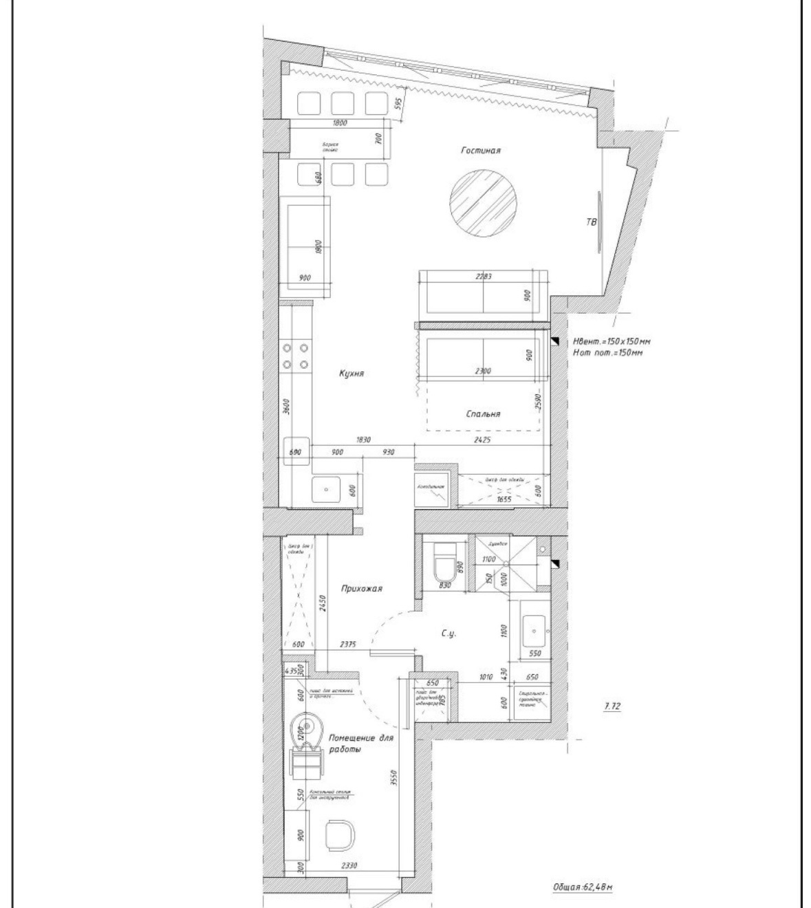 Площадь общая: 65.6 м²