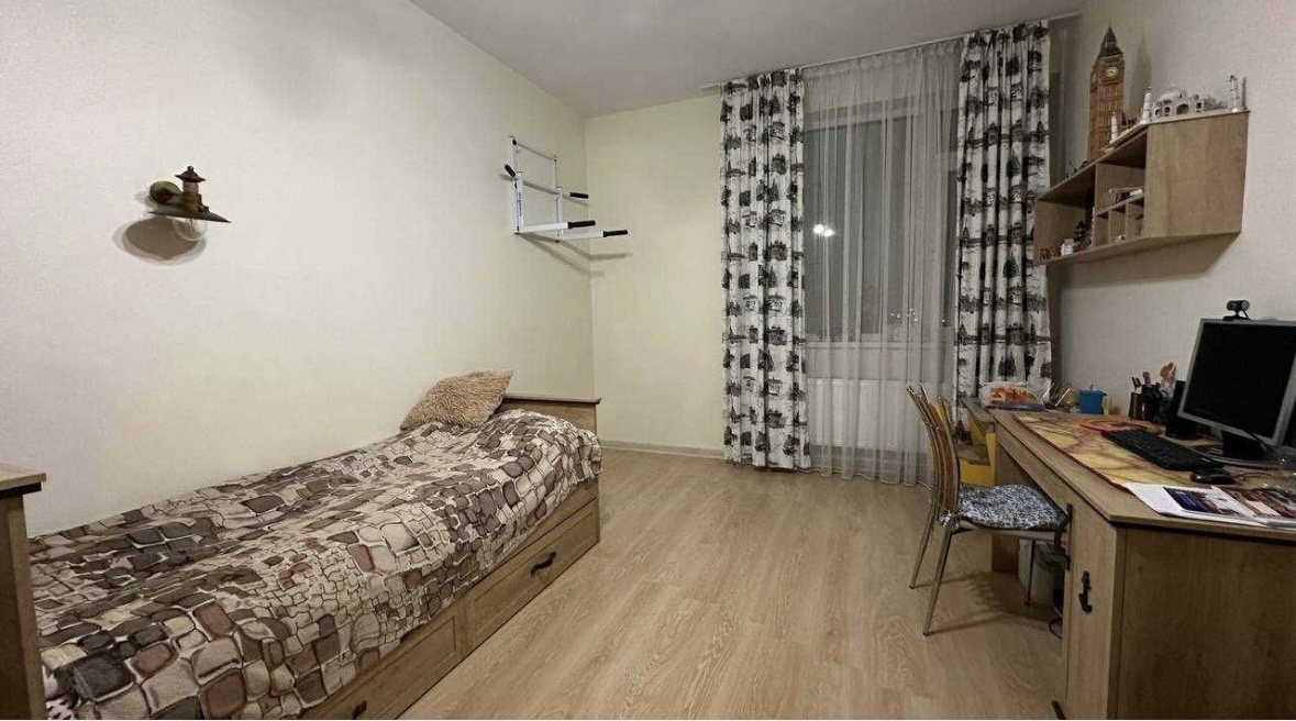Продам квартиру в 5 Жемчужине, 5 этаж. Площадью 82 м2. Две раздельные спальни, кухня гостиная, в гостиной диван. С кухни есть выход на балкон. Одна из спален с красивым панорамным остеклением. Санузел раздельный, есть большая гардеробная кладовая. Квартира в хорошем жилом состоянии, продается полностью с мебелью и техникой. Право собственности