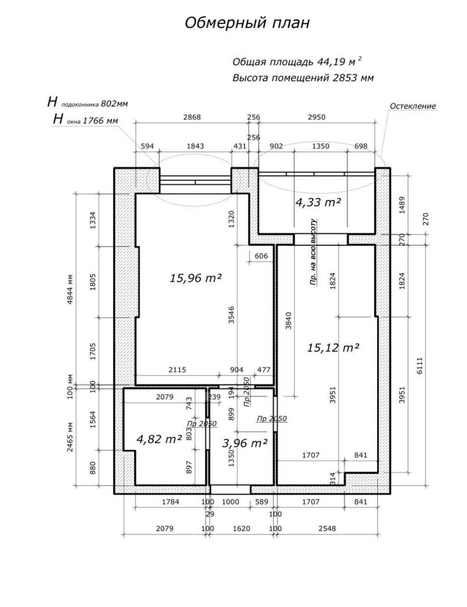 Площадь общая: 44.18 м²