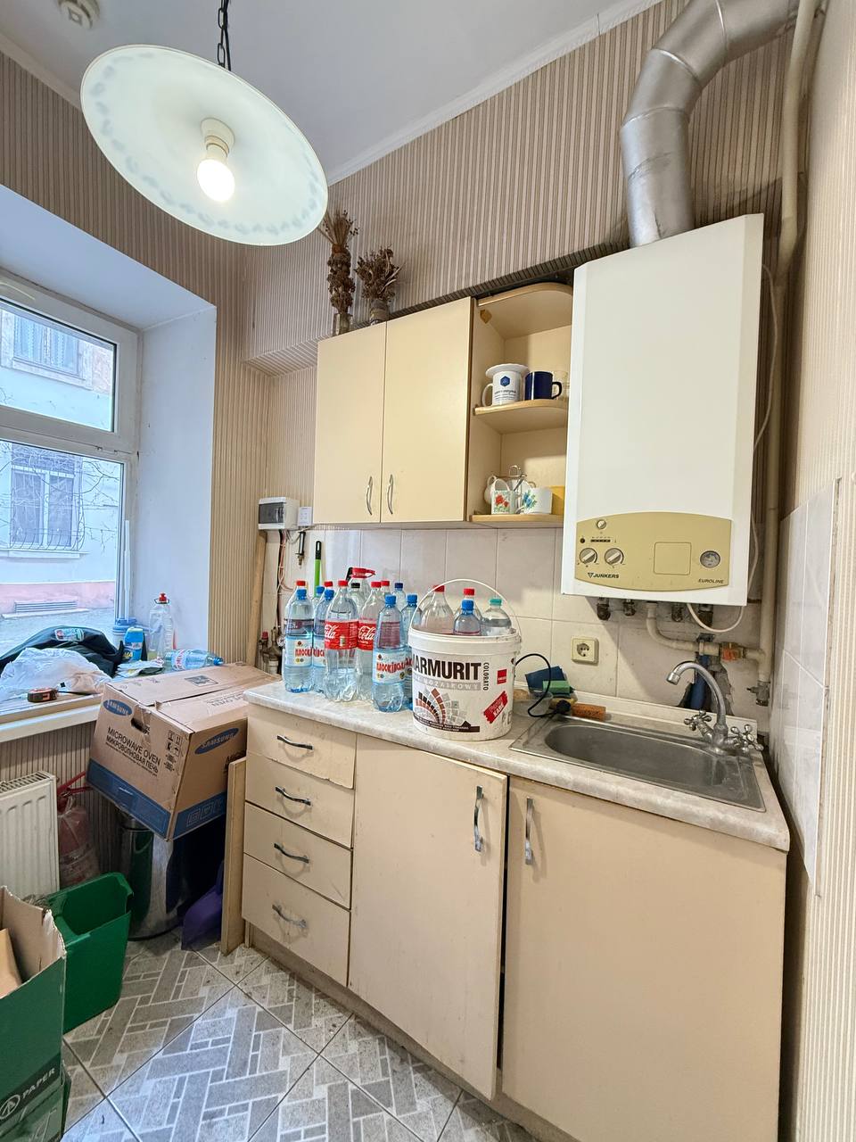 Квартира расположена в большом закрытом дворе, очень светлая , Есть место для авто. Все окна во двор закрыты роллетами. Двух контурный газовый котел . Хорошее жилое состояние Был офис