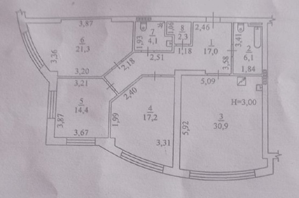 Высота потолков: 3