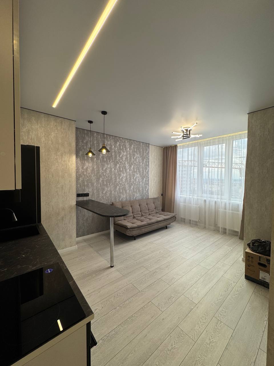 ЖК Приморские сады. . Боковой вид на море. Современный ремонт, мебель, техника. Кухня-гостинная, гардеробная , отдельная спальня. Под домом подземный паркинг, подходит под программы!!!