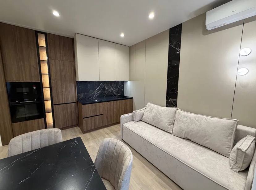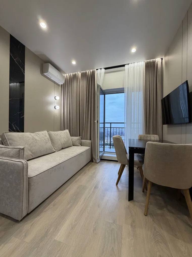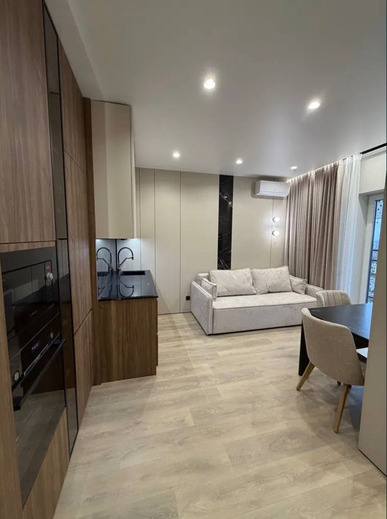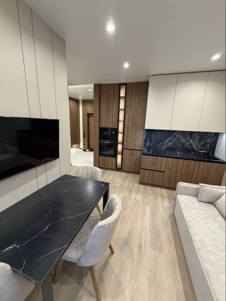 Продам 1-кімнатну квартиру в сучасному житловому комплексі від Kadorr Group. Розташована на високому поверсі, з гарним видом і зручним плануванням. Загальна площа 43 м?. Виконано якісний дорогий ремонт з використанням преміальних матеріалів: теплі підлоги, пофарбовані стіни, двері прихованого монтажу, мармурові стільниці. Квартира повністю укомплектована технікою Bosch і готова до заселення. Закрита територія, що охороняється, відеоспостереження, консьєрж, підземний паркінг, розвинена інфраструктура.