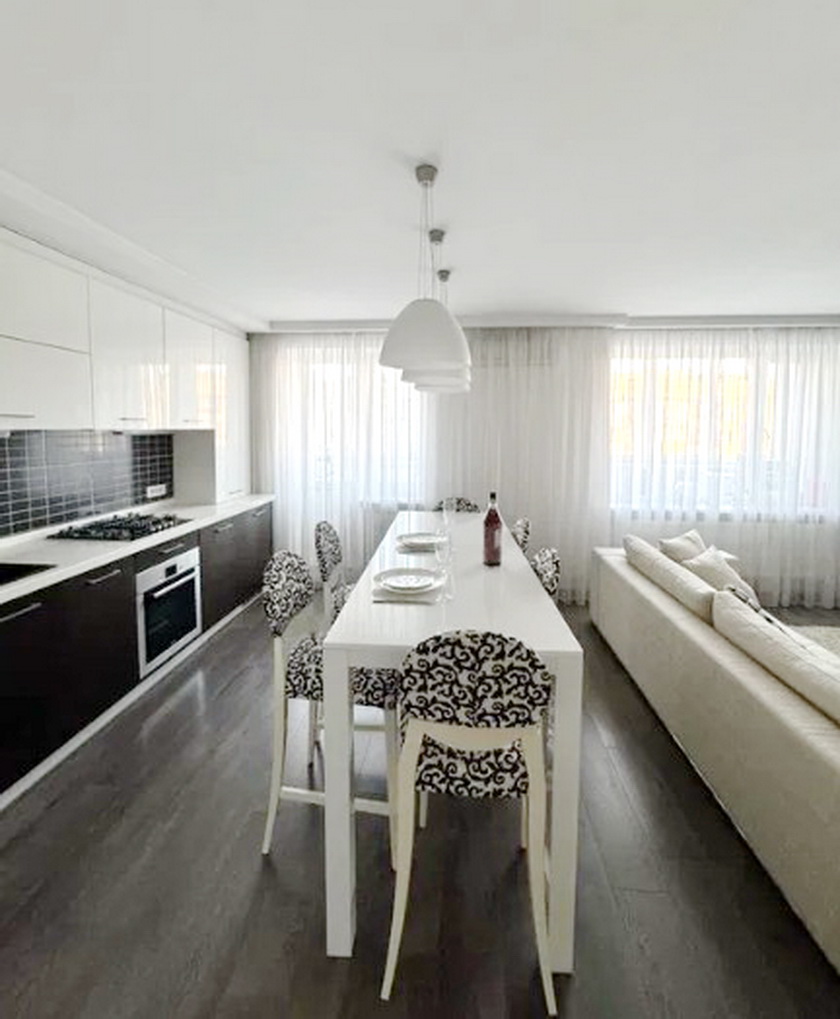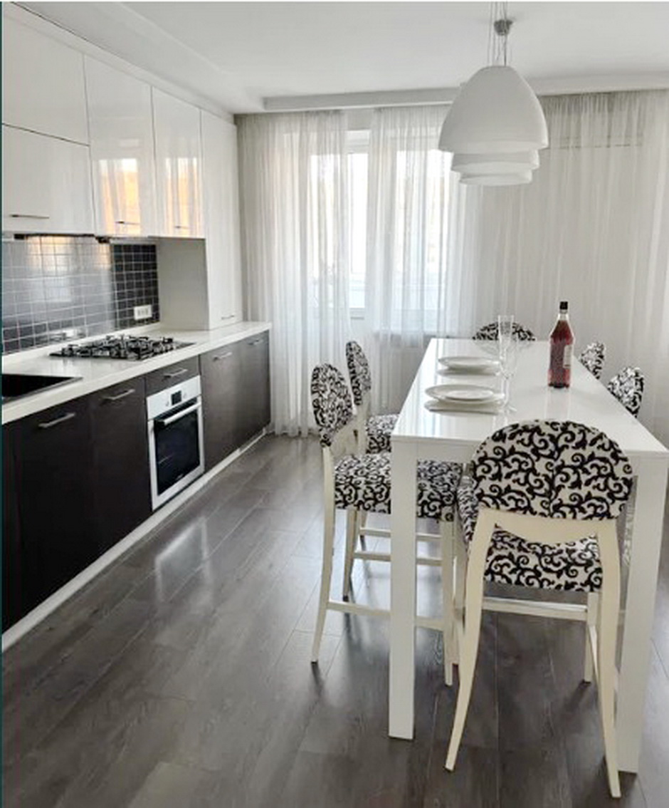 Уютная квартира с дорогим современным ремонтом. Перепланирована в просторную кухню-гостиную с выходом на застеклённую лоджию,,спальню с выходом на раскрытую и утеплённую лоджию и гардеробную комнату. Ванная комната совмещена,душевая кабинка,современная облицовка. Кондициционеры. Установлен индивидуальный газовый котёл. Встроенная кухня и бытовая техника. Квартира полностью укомплектована мебелью и бытовой техникой. Хорошее месторасположение. В шаговой доступности магазины,школы,сквер,остановка .