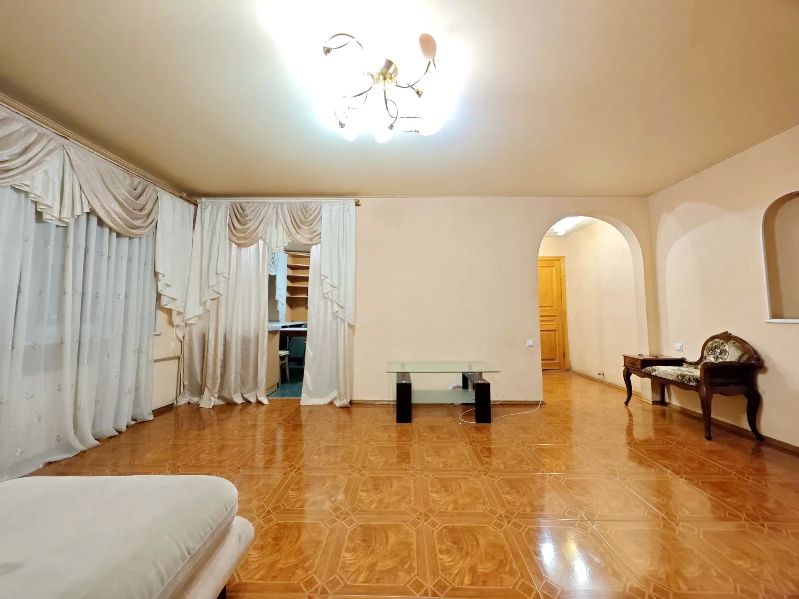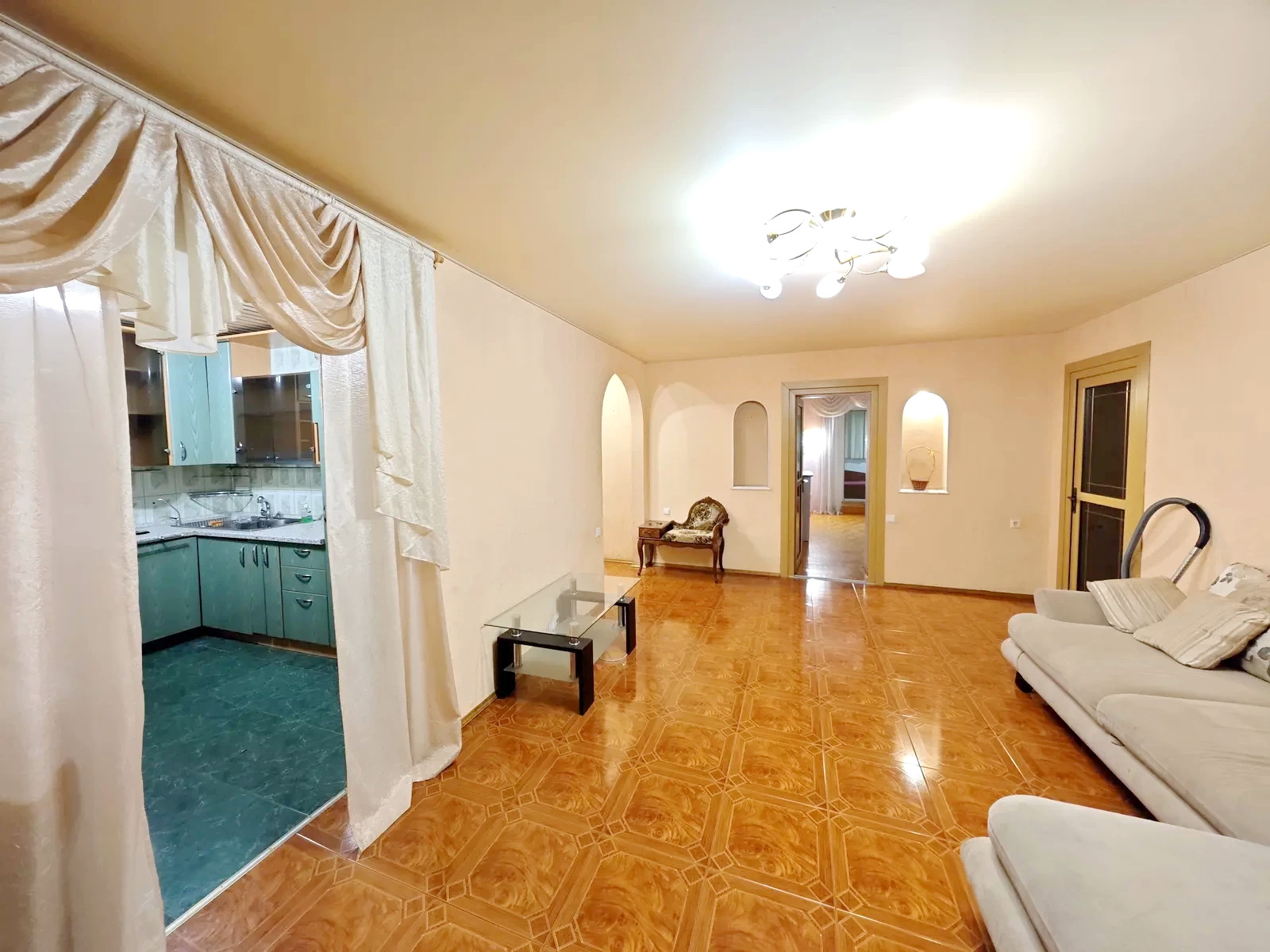 Продам 3-комн. квартиру (2 спальни и студия) с хорошим ремонтом. На первом этаже 9-этажного дома, общая 94,6, жилая 60,1, кухня 9,4 кв. м., отличный район, рядом аркадия, прекрасная транспортная развязка. Квартира двухсторонняя, очень теплая. Большая спальня с выходом на большую застеклённую лоджию, большая гардеробная 4 кв. м. Кухня-студия, диван, кухня оборудована всей необходимой техникой, встроенная кухонная мебель. Третья комната-кабинет. Санузел совмещён, джакузи.