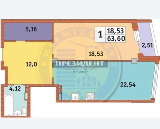 Площа загальна: 63.6 м²