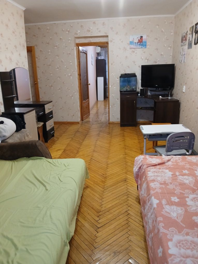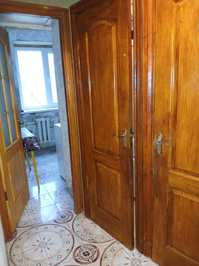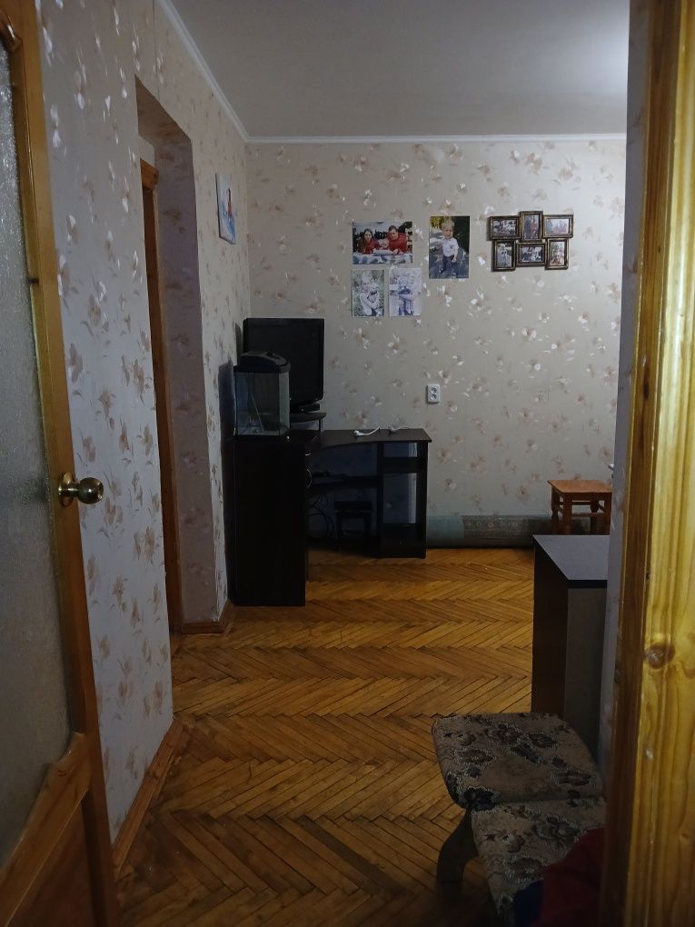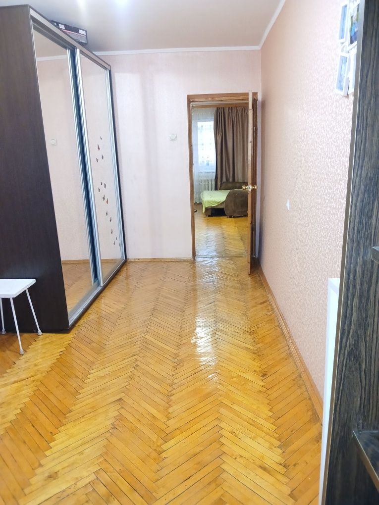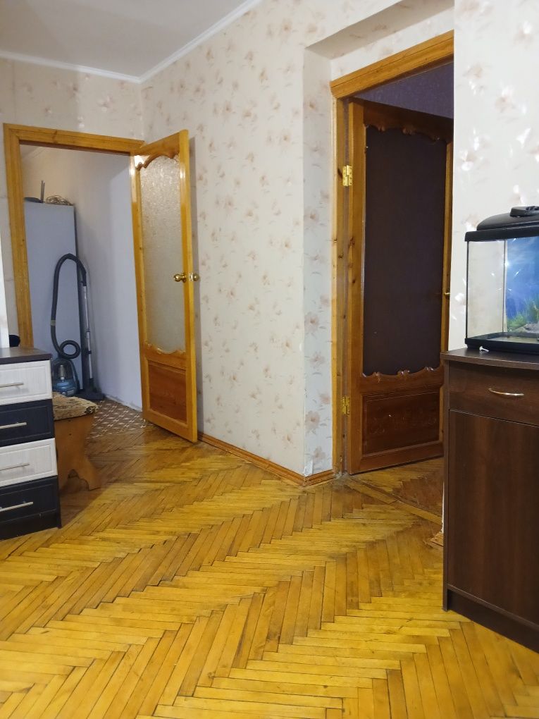 Квартира з косметичним ремонтом. На підлогах паркет у хорошому стані, вікна поміняні на металопласт, балкон засклений. Санвузол фанерований, поміняні труби, сантехніка. У квартирі залишається меблі та техніка. Поруч важлива інфраструктура: школа. дитячийсадок, магазини, транспорт, озеро. Біля будинку є капітальний гараж із підвалом за окрему плату.